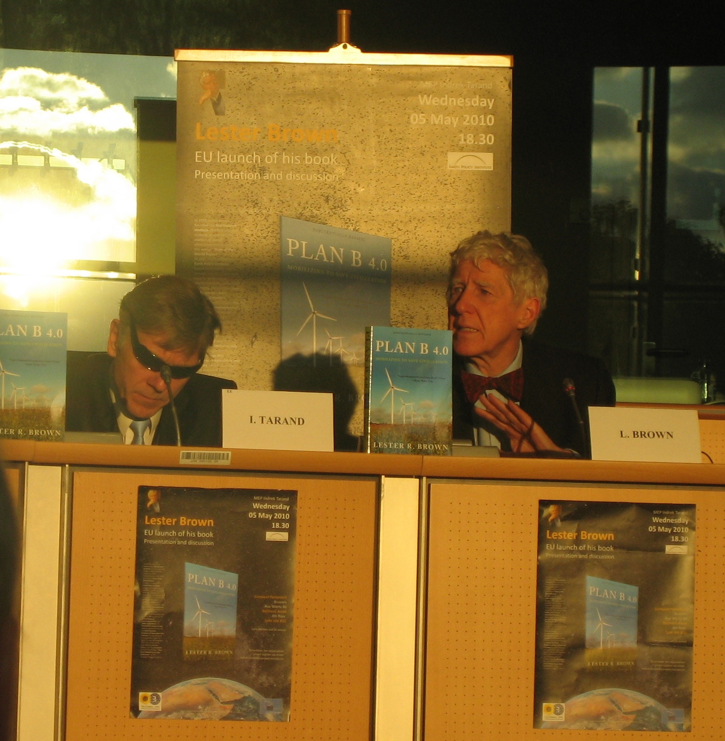 Last evening at the European Parliament in Brussels, Lester Brown, the veteran environmentalist, was launching his latest book, Plan B 4.0, Mobilizing to Save Civilization, which gives a scary account of how far down the road of environmental hooliganism we have gone, yet he remains optimistic that there is scope for action. He was hosted by sun-glassed Estonian MEP, Indrek Tarand.