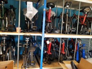 After occasional hiccups in the manufacturing and delivery process, Bromptons are now comfortably producing 30,000 folding bicycles a year in Brentford, which are sold for the most part in the UK, Germany, Benelux, South Korea, Spain and France. They may not be as cheap as a conventional bicycle, but they are incredibly practical, have fantastic accessories that make you want to buy them all (watch out for the tool-kit that fits snugly inside one of the tubes!) and you can take them with you wherever you go. No problem for city-dwellers with no outside space to park a big bike, your Brompton will sit quietly in a corner in the tiniest flat.