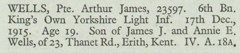 Son of James J. and Annie E. Wells, of 23, Thanet Rd., Erith, Kent.